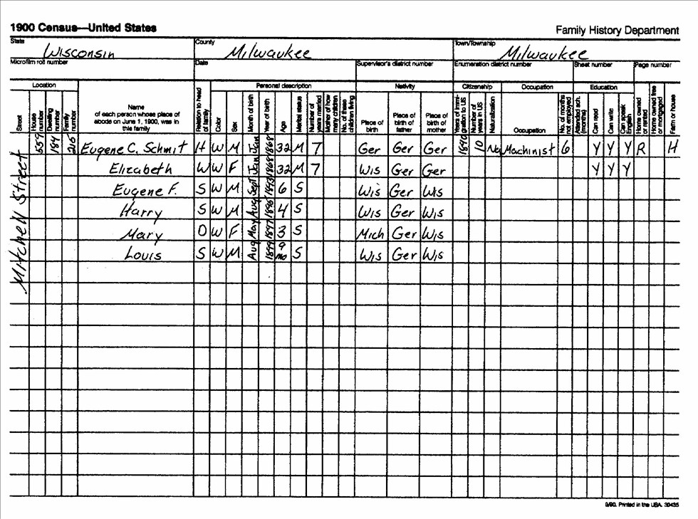 1910 Federal Census For Eugene Charles Schmit